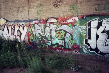 Keywords: Graffiti in Oulu Jul2008 001.jpg en Graffiti under/near a bridge in the city of Oulu in Finland The district is probably Limingantulli fi Graffiteja Oulussa luultavasti Limingantullin kaupunginosan alueella Own Methem Mikko J Putkonen 2008-07 Graffiti in Oulu Limingantulli |