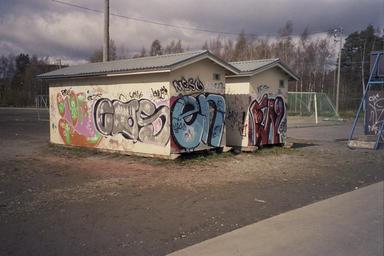 Keywords: Graffiti in Oulu May2008 002.jpg en Graffiti at a sports field in Välivainio Oulu Finland fi Graffiteja urheilukentän liepeillä Oulun Välivainiolla own Methem Mikko J Putkonen 2008-05 Cc-zero 2008 in Oulu Abstract graffiti Graffiti in Oulu May 2008 in Finland Välivainio |