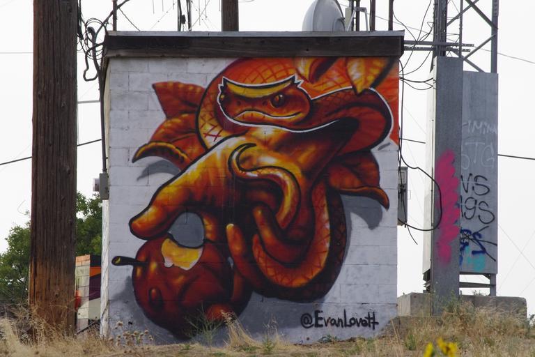 Keywords: graffiti snake temptation apple eden painting hand serpent