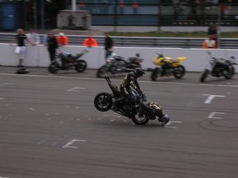 Keywords: Graig Jones.JPG Stuntman Graig Jones op het circuit van Assen Own 2-9-07 Dirk kempen TT-Circuit Assen Motorcycle stunt performers