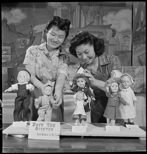 Keywords: Granada Relocation Center, Amache, Colorado. Girls' Reserves Victory Dolls. Jane Nagai, left, and . . . - NARA - 539300.tif Scope and content The full caption for this photograph reads Granada Relocation Center Amache Colorado Girls' Reserves Victory Dolls Jane Nagai left and Boots Sotomura right Each doll was dressed by a Girl Reserve froup in the Granada Center They represent various womens' war-work activities and were on display at the Arts and Crafts Festival March 6th to 8th General notes 539300 Local identifier 210-G-E769 Department of the Interior War Relocation Authority 02/16/1944 - 06/30/1946 Still Picture Records Section Special Media Archives Services Division NWCS-S National Archives at College Park 8601 Adelphi Road College Park MD 20740-6001 1943-03-06 Record group Record Group 210 Records of the War Relocation Authority 1941 - 1989 Record group ARC 537 Central Photographic File of the War Relocation Authority compiled 1942 - 1945 Series ARC 536000 File unit File unit ARC Variant control numbers NAIL Control Number NWDNS-210-G-E769 yes Other versions <gallery> File Granada_Relocation_Center _Amache _Colorado _Girls'_Reserves_Victory_Dolls _Jane_Nagai _left _and_ _ _ _-_NARA_-_539300 tif tif File Granada_Relocation_Center _Amache _Colorado _Girls'_Reserves_Victory_Dolls _Jane_Nagai _left _and_ _ _ _-_NARA_-_539300 jpg jpg </gallery> NARA-cooperation PD-USGov Dolls NARA TIF images with categorized JPGs |