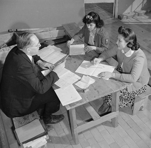 | Keywords: Granada Relocation Center, Amache, Colorado. Miss Mary Saito and Miss Alice Yamaoka, young Nisei re . . . - NARA - 539285.jpg Scope and content The full caption for this photograph reads Granada Relocation Center Amache Colorado Miss Mary Saito and Miss Alice Yamaoka young Nisei residents at the Granada Relocation Center register for defense employment with the assistance of Mr Moon War Relocation Authority Employment Division Representative The United States Army and the War Relocation Authority instigated the registration which is a step towards the use of loyal Nisei manpower in the war effort General notes 539285 Local identifier 210-G-E752 Department of the Interior War Relocation Authority 02/16/1944 - 06/30/1946 NARA-Author Parker Tom Photographer 4682167 <br /> Still Picture Records Section Special Media Archives Services Division NWCS-S National Archives at College Park 8601 Adelphi Road College Park MD 20740-6001 1943-02-12 Record group Record Group 210 Records of the War Relocation Authority 1941 - 1989 Record group ARC 537 Central Photographic File of the War Relocation Authority compiled 1942 - 1945 Series ARC 536000 File unit File unit ARC Variant control numbers NAIL Control Number NWDNS-210-G-E752 Other versions <gallery> File Granada_Relocation_Center _Amache _Colorado _Miss_Mary_Saito_and_Miss_Alice_Yamaoka _young_Nisei_re_ _ _ _-_NARA_-_539285 tif tif File Granada_Relocation_Center _Amache _Colorado _Miss_Mary_Saito_and_Miss_Alice_Yamaoka _young_Nisei_re_ _ _ _-_NARA_-_539285 jpg jpg </gallery> NARA-cooperation PD-USGov Granada War Relocation Center |