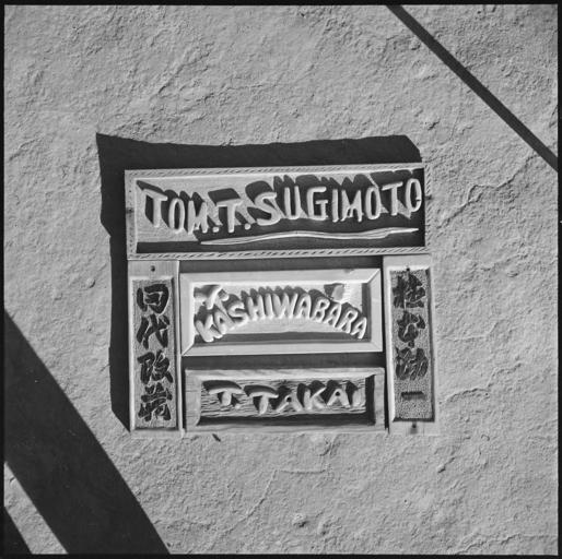 Keywords: Granada Relocation Center, Amache, Colorado. Name plate in English letters and Japanese characters . . . - NARA - 539921.jpg Scope and content The full caption for this photograph reads Granada Relocation Center Amache Colorado Name plate in English letters and Japanese characters carved from scrap lumber General notes 539921 Local identifier 210-G-K400 Department of the Interior War Relocation Authority 02/16/1944 - 06/30/1946 NARA-Author Iwasaki Hikaru 1923- Photographer 8464103 <br /> Still Picture Records Section Special Media Archives Services Division NWCS-S National Archives at College Park 8601 Adelphi Road College Park MD 20740-6001 10/1945 Record group Record Group 210 Records of the War Relocation Authority 1941 - 1989 Record group ARC 537 Central Photographic File of the War Relocation Authority compiled 1942 - 1945 Series ARC 536000 File unit File unit ARC Variant control numbers NAIL Control Number NWDNS-210-G-K400 Other versions <gallery> File Granada_Relocation_Center _Amache _Colorado _Name_plate_in_English_letters_and_Japanese_characters_ _ _ _-_NARA_-_539921 tif tif File Granada_Relocation_Center _Amache _Colorado _Name_plate_in_English_letters_and_Japanese_characters_ _ _ _-_NARA_-_539921 jpg jpg </gallery> NARA-cooperation PD-USGov Granada War Relocation Center Wood carved inscriptions |