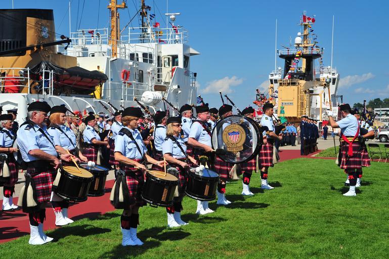 Keywords: grand haven michigan band music bagpipes drums marching sky clouds ship spectators nature outside summer spring grass