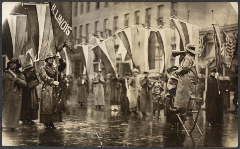 | Keywords: Grand Picket at the White House 159040v.jpg  Photograph on a rainy day of a woman standing on chair in slicker and rain hat speaking through a megaphone to suffragists standing with suffrage banners One banner reads Illinois Building in background Title derived by Library of Congress staff 1 photograph print 5 x 8 in accession number Call Number Location National Woman's Party Records Group I Container I 159 Folder Grand Picket March 4 1917 Source Collection Records of the National Woman's Party institution Library of Congress Manuscript Division http //hdl loc gov/loc mss/mnwp 159040 PD-Harris-Ewing Suffragettes White House in 1917 Demonstrations and protests in Washington D C |