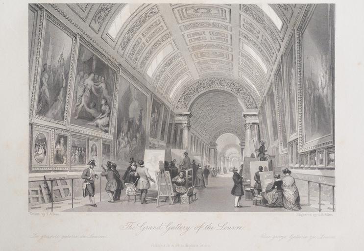 | Keywords: Grande Galerie Louvre by Thomas Allom full.jpg Artwork author info draughtsman Thomas Allom m author info engraver J B Allen m Interior view of the Great Gallery at the Louvre with tourists and painters Published by Fisher Son Co London and Paris Vue de l'intérieur de la grande galerie du Louvre fréquentée par des touristes et des peintres Gravure publiée par Fisher Fils Co Londres et Paris Drawn by T Allom en Engraved by J B Allen en The Grand Gallery of the Louvre en La grande galerie du Louvre fr Die grosze Gallerie zu Louvre de ca 1844 steel engraving cm 18 1 12 3 Similar etching 3420900 object history credit line accession number Marie-Lan Nguyen 2012 PD-old-100-1923 other versions <gallery> File Grande Galerie Louvre by Thomas Allom jpg </gallery> Historical images of the Grande Galerie Louvre room Thomas Allom 1844 engravings 1844 in Paris Engravings of buildings in Paris History of the Musée du Louvre Location not applicable Taken with Nikon D800E Taken with Sigma 70mm F2 8 EX DG Macro 1840s interiors in art James Baylie Allen |