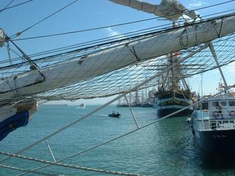 | Keywords: Grandes veleros en Cadiz.jpg  27 Juli 2006 Sammeln für die Regatta zum 50-jährigen Jubiläum der Tall Ships' Races Vorn die Galionsfigur des norwegischen Segelschiffs Christian Radich 27 July 2006 before the 50-year anniversary race of The Tall Ships' Races To the left the figurehead of the Norwegian sailing vessel Christian Radich 27 de Julio de 2006 Concentración para la regata del 50 aniversario de la Tall Ship Race En primer plano el mascarón de proa del buque escuela noruego Christian Radich Own 2006-07-27 Fergon Christian Radich ship 1937 Figureheads Tall Ships' Races 2006 Cadiz Bowsprits |