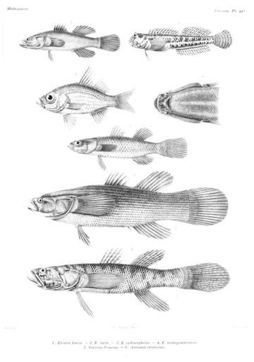 | Keywords: GrandidierMadagascarFishes 0099.jpg Eleotris fuscus Eleotris butis Eleotris ophiocephalus Eleotris madagascariensis Salarias frenatus Ambassis productus Histoire Physique Naturelle et Politique de Madagascar Volume 16 Histoire Naturelle des Poissons atlas http //www archive org/details/histoirephysique16gran web 1885 text Alfred Grandidier 1836-1921 artists various Jobin pd-old-70 Alfred Grandidier Histoire Physique Naturelle et Politique de Madagascar - Grandidier - Volume 16 Poissons | ||||