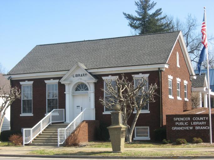Keywords: Grandview Carnegie Library.jpg 37 56 2 N 86 58 51 W Front and southern side of the Grandview w Carnegie library Carnegie Library located at 403 Main Street Indiana State Road 66 State Road 66 in Grandview Indiana Grandview Indiana United States Built in 1918 it is part of the locally designated Grandview Commercial historic districts in the United States Historic District own 2013-02-06 User Nyttend Nyttend No<nowiki></nowiki>ne Built in Indiana in 1918 Brick buildings in Indiana Carnegie libraries in Indiana Historic districts in Spencer County Indiana Indiana State Road 66 Neoclassical architecture in Indiana Building-centered pictures by User Nyttend Taken with Canon PowerShot A540 |