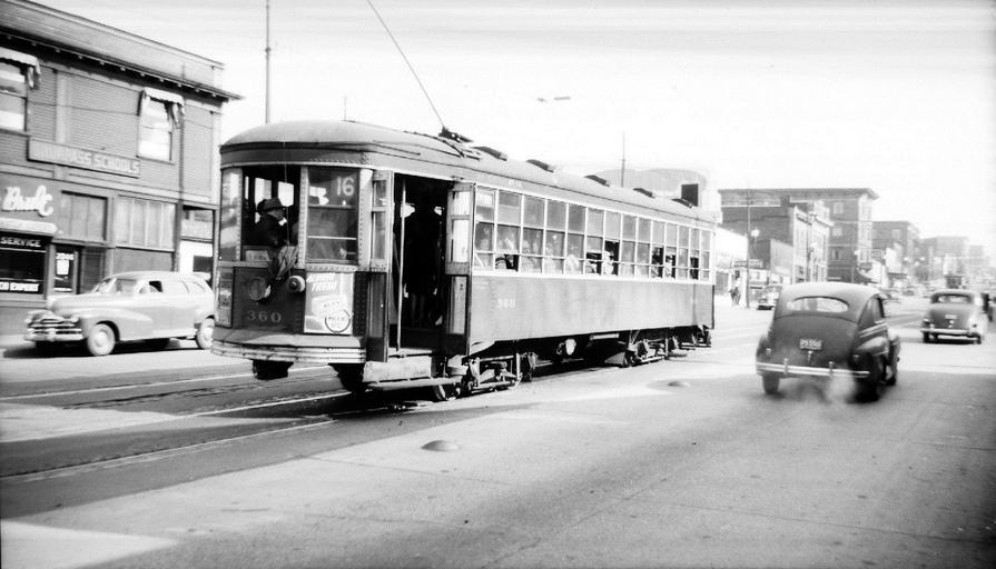 | Keywords: blackandwhite monochrome road vehicle black and white View looking south up Granville Street from the 2000-block (Granville and West 5th Avenue) in Vancouver, BC. The BC Electric Railway Co. streetcar No. 360 working route No. 16 will turn right onto West Broadway. No. 16 route: One direction only, west from Hastings & Boundary - Hastings, Richards, Davie, Granville, West Broadway, Alma, West 10th Ave., Sasamat, W. 4th Ave. - end at W. 4th & Drummond. View looking south up Granville Street from the 2000-block (Granville and West 5th Avenue) in Vancouver, BC. The BC Electric Railway Co. streetcar No. 360 working route No. 16 will turn right onto West Broadway. No. 16 route: One direction only, west from Hastings & Boundary - Hastings, Richards, Davie, Granville, West Broadway, Alma, West 10th Ave., Sasamat, W. 4th Ave. - end at W. 4th & Drummond. |