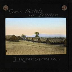 Keywords: "Grass Hostels at Loudon, Livingstonia", Malawi, ca.1910 (imp-cswc-GB-237-CSWC47-LS4-1-047).jpg en <br> Grass Hostels at Loudon Livingstonia Malawi ca 1910 Photograph of grass buildings at Loudon in northern Malawi The buildings are windowless with thatched roofs A figure can be seen in the middle of the picture and there are hills in the background It is unclear what the purpose of these buildings was ; This belongs to a series of Church of Scotland Foreign Missions Committee lantern slides relating to Rev Donald Fraser 1870-1933 Rev Donald Fraser the Scottish missionary was born in Argyllshire Scotland the son of a Free Church minister In his youth Rev Fraser helped found the Student Volunteer Movement in Britain and the World Student Christian Federation before beginning missionary service in Malawi with the Free Church of Scotland He worked in Malawi from 1896 until he returned to Scotland in 1925 He was first posted to Ekwendeni and later Embangweni Rev Fraser worked closely with the Ngoni people Photographer Unknown Filename imp-cswc-GB-237-CSWC47-LS4-1-047 tif Coverage date circa 1910 Part of collection International Mission Photography Archive ca 1860-ca 1960 Type images Part of subcollection Photographs from the Centre for the Study of World Christianity University of Edinburgh U K ca 1900-ca 1940s Repository name Centre for the Study of World Christianity Archival file impaunpub_Volume7/1496 url Repository address The University of Edinburgh School of Divinity New College Mound Place Edinburgh EH1 2LX United Kingdom Geographic subject country Malawi Format aacr2 1 lantern slide 8 x 8 cm Geographic subject continent Africa Rights Contact the repository for details Part of series Donald Fraser of Loudon LS4/1 Repository email divinity-CSWC ed ac uk Subject lcsh Keyword Human settlements; thatched roofs Date created circa 1910 Publisher of the digital version University of Southern California Libraries Subject aat genre exterior views Format aat lantern slides Legacy record ID impa-m68545 Access conditions http //www ed ac uk/schools-departments/divinity/research/centres/world-christianity/collections-resources File GB 237 CSWC47/LS4/1/47 1910 author http //digitallibrary usc edu/cdm/ref/collection/p15799coll123/id/64617 PD-old-70-1923 Magic lantern images Images from USC Digital Library uploaded by Fæ International Mission Photography Archive ca 1860-ca 1960 History of Malawi Livingstonia Rumphi District |