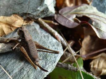 Keywords: grasshopper autumn brown stone