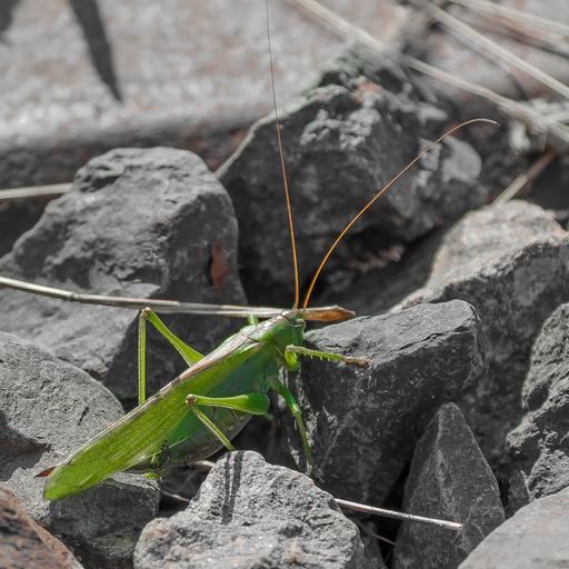 MAKE A MEME View Large Image grasshopper insect green close gravel stones stones