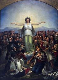 | Keywords: Grateful Hellas (1858).jpg Artwork Creator Theodoros Vryzakis Greece personified as a woman with revolutionaries who participated in the w Greek War of Independence 1858 painting Institution National Historical Museum Athens Athens Greece object history credit line accession number http //www flickr com/photos/telemax/3304728674/ photography by Tilemahos Efthimiadis http //www flickr com/photos/telemax/ other versions PD-old-100 Cc-by-2 0 Tilemahos Efthimiadis Greek War of Independence in art Personifications of Greece Theodoros Vryzakis Georgios Karaiskakis Alexander Ypsilantis Andreas Vokos Miaoulis Laskarina Bouboulina Rigas Velestinlis Adamantios Korais 1858 paintings |