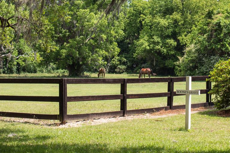 Keywords: grave maker cross horse fence landscape scenery scene plantation farm trees boone plantation south carolina south historic marker grave plot headstone historical old cemetery history confederate grass