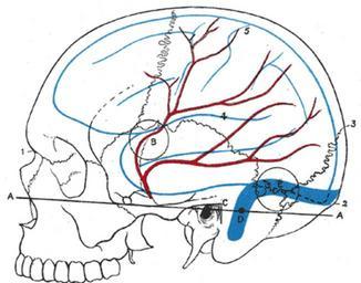 | Keywords: Gray1198.png Relations of the brain and middle meningeal artery to the surface of the skull 1 Nasion 2 Inion 3 Lambda 4 Lateral cerebral fissure 5 Central sulcus AA Reid ™s base line B Point for trephining the anterior branch of the middle meningeal artery C Suprameatal triangle D Sigmoid bend of the transverse sinus E Point for trephining over the straight portion of the transverse sinus exposing dura mater of both cerebrum and cerebellum Outline of cerebral hemisphere indicated in blue; course of middle meningeal artery in red Other fields 1 Information field Ucfirst Plate 1198 before 1858 Henry Gray Anatomy of the Human Body See Book section below 1198 Creator Henry Vandyke Carter Book Gray's Anatomy PD-old-100-1923 Gray's Anatomy plates 1198 Central sulcus Lateral sulcus Nasion |