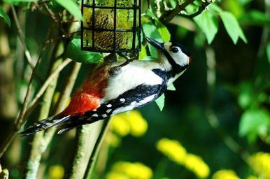 Keywords: great spotted woodpecker woodpecker bird food eat fat balls