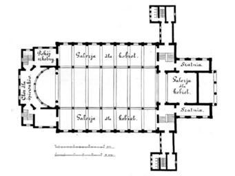 Keywords: Great Synagogue in Warsaw (02).png en Great Synagogue in Warsaw plan of the first floor pl Wielkia Synagoga w Warszawie plan pierwszego piętra uk Велика синагога у Ва шаві План д угого пове ху А хітекто Леанд о а коні 1834-1919 http //bcpw bg pw edu pl/dlibra/doccontent id 930 Architekt 1902 3 s 21-22 Leandro Jan Marconi 1834-1919 before 1902 PD-old PD-Poland Great Synagogue in Warsaw