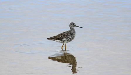 Keywords: greater yellowlegs bird wildlife nature water reflection standing wading wader beach shore shorebird