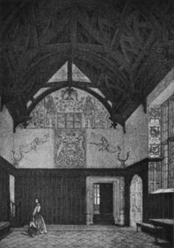 | Keywords: GreatHallBradfieldHouseDevon.jpg en Great Hall Bradfield House Devon looking toward the north gable wall showing the arms of King James I and a crudely executed wall-painting of two soldiers Pevsner p 199 http //www finest-carved-doors com/history/history-carved-doors-54 html 1867 engraving by Palmer attached to report by John Hayward architect responsible for 1860's alterations read at a meeting at Bradfield House to the Congress of the Archaeological Association per Gray Todd Devon Country Houses Gardens Engraved Vol 1 Mint Press Exeter 2001 p 39 1867 Bradfield House Uffculme PD-old-100 |