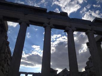 Keywords: greece acropolis columns sky blue the ruins of the antique clouds from the bottom of the cloud white