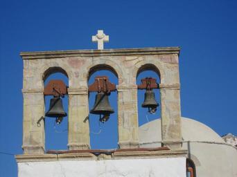Keywords: greece church europe island mediterranean blue sky bell cross architectural