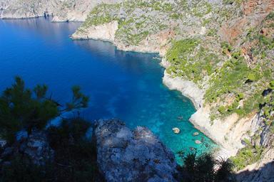 Keywords: greece sea ocean water shoreline summer spring nature outside trees rocky inlet