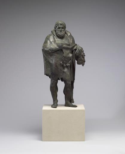 | Keywords: Greek - Aged Herakles - Walters 54764.jpg  This bronze statuette depicts a heavy-set Herakles in a rare moment of quiet His shoulders are covered with a lion skin that gathers in a generous fold behind his neck The drooping lion skin is visual contrast to Herakles' fully muscled body The rich curls of the lion's mane drape over the hero's left arm but the head of the animal is now missing Herakles' right arm is hidden beneath the skin Similar examples of this statue-type indicate that his left hand held a club against the left shoulder Herakles is heavily bearded his facial hair rendered in thick curls reminiscent of the lion's mane A gilded band encircles his head The eyes are silver and it appears that another material would have been used for the pupils This representation of Herakles is known from several examples including a marble version in the Walters Art Museum 23 74 Both of the Walters' pieces are likely modeled on a famous Hellenistic statue of the hero as a wayfarer Euripides' play Alkestis depicts just such a Herakles who appears as a traveler and unannounced guest at the home of Admetos whose wife Alkestis has just died In the drama the hero is initially unaware of the tragedy unfolding around him Oblivious to his host's suffering he advocates drinking wine to ease life's difficulties revealing a less noble side of the hero Once he finally recognizes the plight of the family he reverts to his heroic self and succeeds in bringing Alkestis back to life Unlike so many depictions of Herakles this statuette captures the hero in a moment of rest rather than at the height of a challenge The bulk of his body his mature appearance and his relaxed pose suggest that this is the hero later in life well after the period of his famed labors Roman copy 1st century BC-AD 1st century; Greek original 3rd century BC Hellenistic cast bronze with silver and gilding cm 43 23 8 14 accession number 54 764 37884 Dirkan Kelekian New York and Paris date and mode of acquisition unknown Henry Walters Baltimore date of acquisition unknown by purchase Walters Art Museum Henry Walters Acquired by Henry Walters Heroes Mortals and Myths in Ancient Greece The Walters Art Museum Baltimore; Frist Center for the Visual Arts Nashville; San Diego Museum Of Art San Diego; Alexander S Onassis Public Benefit Foundation USA New York 2009-2011 place of origin Greece Walters Art Museum license Ancient Greek sculptures in the Walters Art Museum Ancient Roman sculptures in the Walters Art Museum Art from Greece Media contributed by the Walters Art Museum needs artist review Statues of Heracles Heracles as an old man Heracles wearing Nemean lion fur skin Old age in Ancient Egypt |