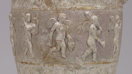 MAKE A MEME View Large Image Greek - Erotes & Acanthus - Walters 48117 - Detail A.jpg This vase is a superb example from a rare group of ornate vessels Their undecorated backs suggest they were intended for display within a niche The Eros figures carry the attributes ...
