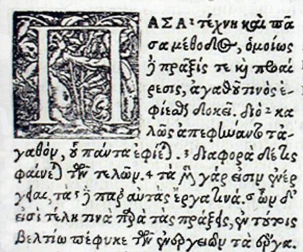 Keywords: Greek print 1566 Aristotle.png Early Greek print First page of Aristotle's Nicomachaen ethics printed Basel Johannes Oporin und Eusebius Episcopius August 1566 Cropped to demonstrate early Greek print fonts http //www ub unibas ch/kadmos/gg/pic/gg0127_007_txt htm 2008-01-27 cropped photoshopped for readability and uploaded by User Future Perfect at Sunrise pd-old uncropped version Image Aristotelis_De_Moribus_ad_Nicomachum jpg Works of Aristotle |
