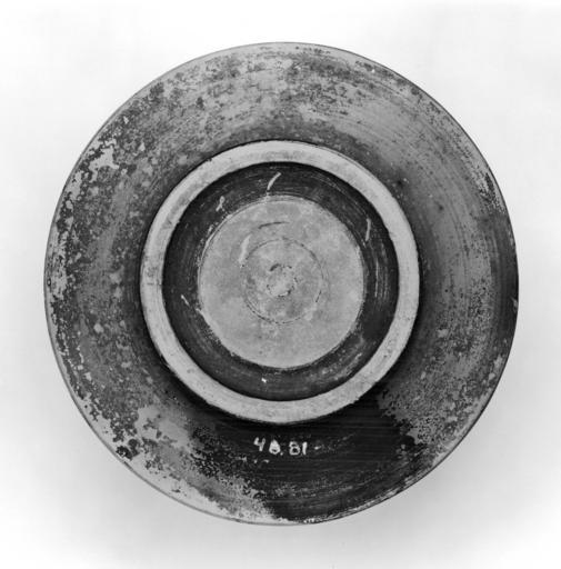 | Keywords: Greek - Pyxis with Decoration of Dog, Bull, and Griffin - Walters 4881 - Bottom.jpg Red figure decoration century 4 3 BC yellow clay with metallic black glaze cm 8 11 7 accession number 48 81 15013 Sotheby Wilkinson and Hodge Sale London May 23-24 1921 lot no 243 Henry Walters Baltimore 1921 by purchase Walters Art Museum Henry Walters Acquired by Henry Walters 1921 place of origin Greece Walters Art Museum license Ancient Greek red-figure pottery in the Walters Art Museum Ancient Greek pottery pyxides Media contributed by the Walters Art Museum needs category review |