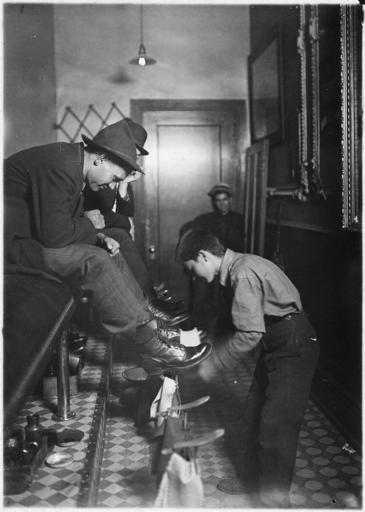 | Keywords: nara:arcid=523072 u.s. national archives usnationalarchives lewis hine lewishine blackandwhite monochrome black and white PortraitOriginal Caption: Greel's Shoe-Shining Parlor. Said he was 15 years old. Works some nights until 11 P.M. Indianapolis, Ind, August 1908 U.S. National Archives’ Local Identifier: 102-LH-50 Photographer: Hine, Lewis Subjects: Child Labor National Child Labor Committee Working Conditions Factory Persistent URL: research.archives.gov/description/523072 Repository: Still Picture Records Section, Special Media Archives Services Division (NWCS-S), National Archives at College Park, 8601 Adelphi Road, College Park, MD, 20740-6001. For information about ordering reproductions of photographs held by the Still Picture Unit, visit: www.archives.gov/research/order/still-pictures.html Reproductions may be ordered via an independent vendor. NARA maintains a list of vendors at www.archives.gov/research/order/vendors-photos-maps-dc.html Access Restrictions: Unrestricted Use Restrictions: Unrestricted PortraitOriginal Caption: Greel's Shoe-Shining Parlor. Said he was 15 years old. Works some nights until 11 P.M. Indianapolis, Ind, August 1908 U.S. National Archives’ Local Identifier: 102-LH-50 Photographer: Hine, Lewis Subjects: Child Labor National Child Labor Committee Working Conditions Factory Persistent URL: research.archives.gov/description/523072 Repository: Still Picture Records Section, Special Media Archives Services Division (NWCS-S), National Archives at College Park, 8601 Adelphi Road, College Park, MD, 20740-6001. For information about ordering reproductions of photographs held by the Still Picture Unit, visit: www.archives.gov/research/order/still-pictures.html Reproductions may be ordered via an independent vendor. NARA maintains a list of vendors at www.archives.gov/research/order/vendors-photos-maps-dc.html Access Restrictions: Unrestricted Use Restrictions: Unrestricted |
