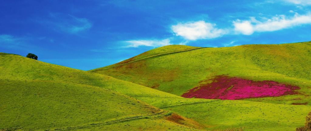 Keywords: green grass fields hills blue sky nature landscape