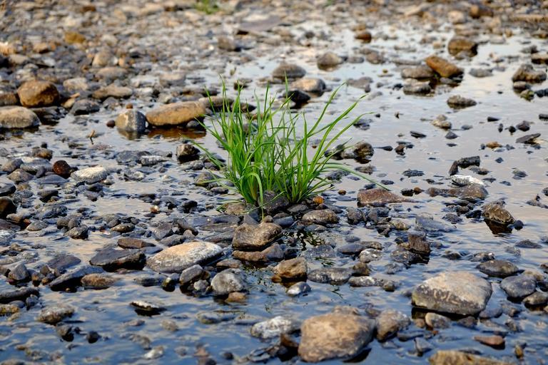 Keywords: green plant river water bank fluent waters nature landscape wet liquid mood pebble steinchen green plant grow leaf ground stones earth grass