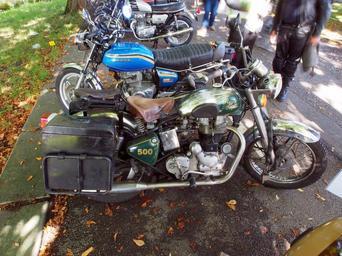 Keywords: Green Royal Enfield 500 pic3.JPG Green Royal Enfield 500 own 2012-09-22 14 07 13 AlfvanBeem CC-zero Nationaal Veteraan Treffen Woerden 2012 Classic vehicle photographs by Alf van Beem Royal Enfield Bullet