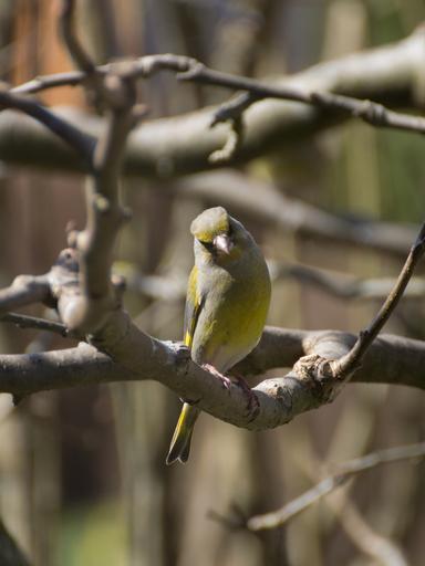 Keywords: greenfinch bird tree animal songbird feather plumage garden spring bill small branch yellow green