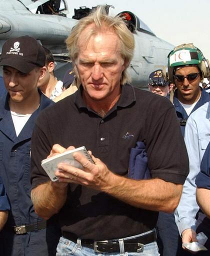 | Keywords: Greg Norman Oct. 11 2004.jpg Greg Norman visiting aircraft carrier USS John F Kennedy source detail of http //www navy mil/view_image asp id 18139 041011-N-4565G-009 Dubai U A E Oct 11 2004 - Professional golfer Greg Norman signs autographs for Sailors as he visits the conventionally powered aircraft carrier USS John F Kennedy CV 67 during the ship's port visit to Dubai U A E After a short tour Norman hit several golf balls off the fantail of the ship Kennedy and embarked Carrier Air Wing Seventeen are currently on deployment in the 5th fleet area of responsibility in support of Operation Iraqi Freedom OIF U S Navy photo by Photographer's Mate Airman Tommy Gilligan RELEASED Greg Norman |