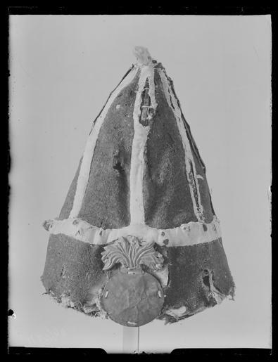 | Keywords: Grenadjärmössa för manskap vid Hälsinglands regemente för vilka anskaffningen bestämdes 1748 - Livrustkammaren - 27838.tif LSH artwork sv Grenadjärmössa av den toppiga rysk-preussiska typen av blå ylletuskaft med förstärkningslisterna av horn klädd med vit ylletuskaft Upptill en tofs av vitt yllegarn Hel framplåt av koppar l 265 mm b 225 mm med granat det krönta lilla riksvapnet trofégrupp och Hälsinglands vapen Bakplåt av koppar l 100 mm b 72 mm i form av granat bruten i två delar <br/>Mösstomme av papp Foder av ofärgad filt Bakom framplåten är ett lager gul ylletuskaft original caption ca 1748 copper d7 - dräkt - dekor material koppar - horn - woolen Färg blå vit d1 - dräkt - yttermaterial material ylle g 410 size mm 180 230 280 LRK place of origin original filename LN_E00309 49444 inventory number LRK 12879 27838 CC0 Grenadjärmössa för manskap vid Hälsinglands regemente för vilka anskaffningen bestämdes 1748 - Livrustkammaren - 27838-negative tif <gallery caption Different images of same object > File Grenadjärmössa för manskap vid Hälsinglands regemente för vilka anskaffningen bestämdes 1748 - Livrustkammaren - 19276 tif </gallery> Hats Media contributed by LSH 2015-11 |