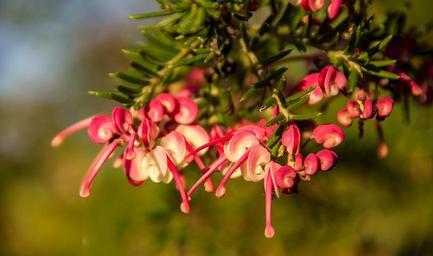 Keywords: grevillea flower australian native pink red white nectar shrub garden bloom delicate