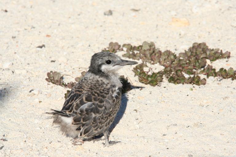 Keywords: grey backed tern partly feathered baby standing beach island waterfowl bird seabird fowl wildlife