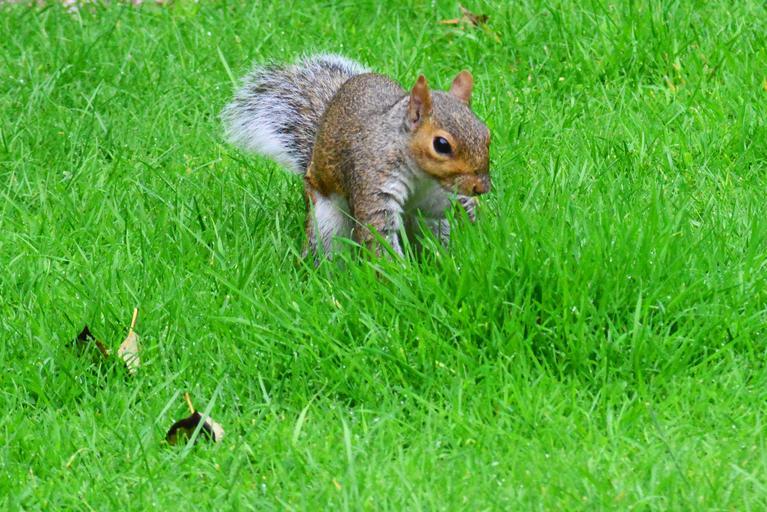 Keywords: grey squirrel front view rodent squirrel animal mammal grass