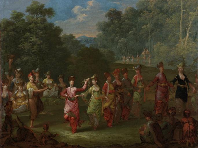 | Keywords: Griekse mannen en vrouwen dansen de khorra Rijksmuseum SK-A-2009.jpeg accession number SK-A-2009 Jean Baptiste Vanmour credit line nl In een bosachtige omgeving dansen Griekse mannen en vrouwen de Khorra Links een doedelzakspeler Collection schilderijen; Vanmour serie ; Jean Baptiste Vanmour 1671-1737 olieverf op doek ca 1720-1737 drager Height cm 44 5 drager Width cm 58 exhibition history 2009-2010 Jean Baptiste Vanmour Peintre de la Sublime Porte 1671-1737 Valenciennes 2003-2003 De Ambassadeur de Sultan and de Kunstenaar op audiëntie in Istanbul Amsterdam Institution Rijksmuseum Technique oil canvas object history Acquisition 1902 object type Potential derivatives exist check http //commons wikimedia org/w/index php search Rijksmuseum+SK-A-2009 this search PD-US PD-old Data and photography rights All data and all images made available through the API are either in the public domain or are subject to a CC0 license https //www rijksmuseum nl/en/api/terms-and-conditions-of-use cc-zero place of creation http //www rijksmuseum nl/collectie/SK-A-2009 Griekse mannen en vrouwen dansen de khorra Q17326787 Uploaded with GWToolset Griekse mannen en vrouwen dansen de khorra Rijksmuseum SK-A-2009 http //www rijksmuseum nl/media/assets/SK-A-2009 Images uploaded by Fæ Images from the Rijksmuseum Turkish paintings in the Rijksmuseum Amsterdam Paintings by Jean Baptiste Vanmour |