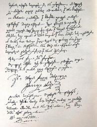 | Keywords: Grigol Orbeliani MSS.jpg en A letter by Prince Grigol Orbeliani 1804-1883 century 19 მაღრაძე ელგუჯა გრიგ ლ რბელია ი ბი გრ რ მა ი; წერილები - თბ საბჭ საქართველ 1989 unknown photographer PD-Old Grigol Orbeliani Manuscript letters written messages Mkhedruli historical documents |