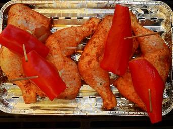 Keywords: grill barbecue delicious meat paprika tomato onion food eat dine chicken chicken drumsticks grilled bbq season seasoned marinated