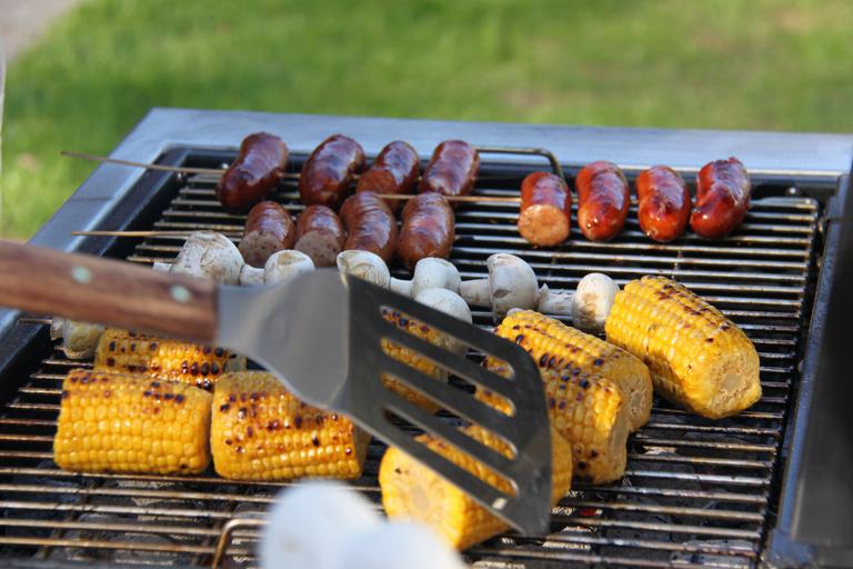 Keywords: grilling summer corn on the cob sausage summer time