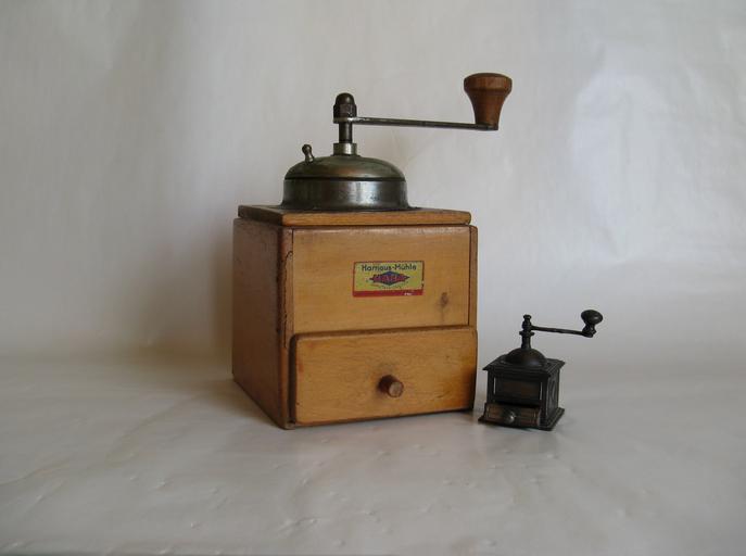 Keywords: grinder coffee grind crank mill old historically antique nostalgia manually close brown iron coffee beans retro vintage past wood flea market