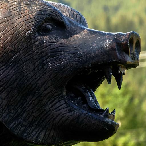 Keywords: grizzly bear mammal head metal statue art sculpture