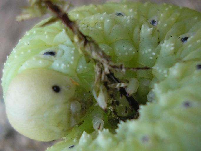Keywords: Groene rups 4-5cm opgerold.jpg thumb right same animal - walking other picture near rest area Lucasgat on the dutch A1 motorway in an area that has lots of oak and pine-like trees and maybe some birch too It rolled up when the camera came too close and clutched a little twig of the moss it was walking on I ripped the twig out of the ground and photgraphed the head upclose from the bottom protected side The little leggs clutching the twig are also nicely visible As I know nothing about these critters I looked and asked around and it seems this would be the larva of a Birch Sawfly Cimbex femoratus Update According to Doc Taxon it is a Cimbex femoratus larva Doc Taxon states that for other species with very similar larva Cimbex lutea and Cimbex fagi the warts would be smaller and more cone-shaped as oposed to the larger and more Zuckerhut -shaped warts on the C femortaus <small>The German word Zuckerhut refers to a suger cone with fairly steep sides and a clearly rounded tip used in the preparation of Feuerzangenbowle See Wikipedia English or German </small> As a reference for this the following book is quoted H Lorenz M Kraus Die Larvalsystematik der Blattwespen Tenthredinoidea und Megalodontoidea in Nr 1 Abhandlungen zur Larvalsystematik der Insekten Akademie-Verlag Berlin 1957 Please feel free to edit this page and add more identification info or other comments Birch Sawfly Larva Cimbex femoratus - rolled up and clutching a twig <br /> Location Motorway rest area Lucasgat near Apeldoorn Netherlands <br /> Keywords wildlife nature insect symphyta woods woodland birch sawfly summer green larvae caterpillar grub Larve van een Berkenknotssprietbladwesp of kortweg Berkenknopwesp Cimbex femoratus - opgerold en houdt zich vast aan een twijgje mos <br /> Locatie Parkeerplaats Lucasgat langs de A1 bij Apeldoorn NL <br /> Trefwoorden larve berk wesp rups groen Larve der Grosse Birkenknopfhornblattwespe - aufgerollt und hällt sich fest an einen Zweig Moos own 2006-07-29 Pudding4brains P4bFnF Cimbex femoratus Tenthredinoidea heads |