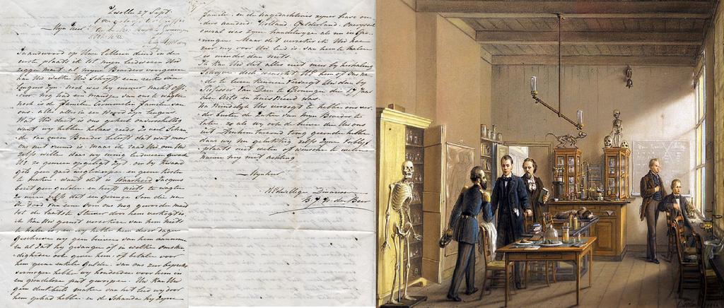 | Keywords: Deze brief van B.J.N. de Boer te Zwolle aan Apotheker (drogist) N. Essingh beschrijft de oplichtingspraktijken van een broer van de schrijver. Daarnaast verwijst hij naar professor Izaäc van Deen die in Zwolle 17 jaar hun huisarts en huisvriend was. Dat maakt deze brief speciaal. Izaäc van Deen was de eerste Joodse Hoogleraar in Nederland (1851) aan de universiteit van Groningen. Dat ging niet zonder slag of stoot omdat anti-semitisme in die tijd niet ongewoon was. In 2012 is er een biografie over Izaäc van Deen verschenen "Tussen zieken, boeken en kikkers – De fysiologie van een leven Izaäc van Deen (1804-1869)". Hieronder de tekst van de brief. Daarna nog wat extra informatie over Izaäc van Deen. Op internet is redelijk veel informatie over hem te vinden. Zwolle, 27 Sept. 1852 In antwoord op Uwe letteren diend in den eersten plaats ik tot mijn leedwezen ued zeggen moet, al mijne Broeders voorgeven (beweringen) aan ued, welke U schrijft eene reeks van leugens zijn. Noch was hij immer nachtofficier. Nog had een mandjes? van ons te wagten (verwachten) noch is de familie Crommelein familie van ons. Alles in een woord zijn leugens. Wat Ued doet is ons geheel onverschillig. Want wij hebben helaas reeds zo veel schande van onzen broeder beleeft, dat wat meer ons niet vreemd is. Maar ik raad Ued om Ued zelfs willen, daar wij innig leedwezen gevoelen u zo gemeen opgeligt zijt. Om bij kwaad geld geen goed weg te werpen en geene kosten te maken. Want dit is waarheid. Jacques bezit geen gulden en heeft niets te wagten (verwachten). Zo verre zelfs dat een geringe som die na de dood van eene Oom ons nog geworden moet, tot de laatste Stuiver door hem verkogt is. Ik kan Ued gerust verzekeren van hem niets te halen is, en wij hebben hem deser dagen geschreven wij geen brieven van hem aannemen. En al zat hij gevangen of in welke omstandigheden ook, geven hem, of betalen voor hem geene enkele gulden. Van ons zeer beperkte vermogen hebben wij honderden voor hem in een grondelozen put geworpen. Ued kan Ued geen denkbeeld maken van het leed wij door hem gehad hebben. en de schande hij zijne familie en de nagedachtenis zijner brave ouders aandeed. Holland, Gelderland, Overijssel, overal was zijne handelwijze als nu in Groningen. Maar dit verzeker ik Ued hoe zeer mij voor Ued leed is, van hem te halen is minder dan niets. Ik kan ued dit alles niet meer bij herhaling schrijven. Doch wenscht Ued hem of ons nader te leren kennen, vervoegt ued dan bij Professor Van Deen te Groningen die 17 jaar onzen arts en huisvriend was. Na vriendelijk ued verzogt te hebben ons verder buiten de zaken van mijn broeder te laten. Zoals wij ook de brieven die ued ons uit Arnhem toezond terug gezonden hebben. Daar wij nu gelukkig zelfs zijnen verblijfplaats niet weten of wenschen te weten. namens mij met achting B.J.N den Boer Izaäc van Deen De eerste joodse professor in Nederland, Izaac van Deen (1804-1869). was een vooraanstaande fysioloog die in zijn tijd gold als een pionier binnen een groep 'nieuwe medici'. Zij keerden zich af van de aloude romantische aanpak en waren voorstanders van 'een moderne natuurwetenschappelijke benadering van de geneeskunde'. De zoon van de uit Kopenhagen afkomstige Groningse opperrabbijn Abraham Tiktin Izaäksen van Groningen studeerde medicijnen in Kopenhagen en Leiden. Tijdens zijn studie in Leiden maakte hij kennis met de Zwollenaar H.C.H. Thorbecke, een broer van de staatsman. Izaac van Deen promoveerde in 1831 in Kopenhagen. Zijn relatie met de Thorbeckes wordt in verband gebracht met zijn beslissing om zich in Zwolle te vestigen. Izaac van Deen en Roelof Jan Thorbecke onderhielden een regelmatige correspondentie. In 1834 promoveerde hij in Leiden opnieuw op een proefschrift over het zenuwstelsel en vestigde zich als arts in Zwolle. Hij verwierf bekendheid met zijn experimenten en openbare demonstraties van de zenuwbanen van kikkers. Izaac van Deen reisde in de postkoets of trekschuit met zijn trommels vol voor de vivisectie bestemde kikkers door Nederland. Hij toonde bij kikkers en konijnen proefondervindelijk aan dat sommige zenuwstrengen in het ruggenmerg motorische prikkels doorgaven terwijl andere zenuwen gevoelsprikkels geleiden. Dat deze achterstrengen dienen voor de geleiding van het gevoel, de voorstrengen voor de geleiding van motorische prikkels was indertijd een nieuwe ontdekking. Het resultaat van zijn onderzoek werd als "Over de voorste en achterste strengen van het ruggemerg" gepubliceerd. De jonge medicus was een voorman van de groep "nieuwe medici" die strikt rationeel en modern natuurwetenschappelijk wilden werken en afstand namen van de oude romantische aanpak van wetenschappelijk onderzoek. Izaac van Deen correspondeerde met de jonge mede-fysiologen F.C. Donders en Jacob Moleschott. In 1834 en in 1849 braken in Dalfsen en Zwolle cholera-epidemieën uit. Van Deen kende de oorzaak van de dodelijk verlopende ziekte niet. Hij was onderwezen in de uit de middeleeuwen stammende theorie van de miasmen. Men leerde dat cholera ontstond "door een tot nu toe niet ontdekt specifiek nocens (vergift), hetwelk in de atmospheer, die overigens in hare normale zamenstelling onveranderd is, gemengd is. Dit nocens doordringt ook het bovenste gedeelte van het water, en wordt dientengevolge door de waterwegen vooral spoedig verspreid". Een vermoeden van het later aangetoonde verband tussen het ontstaan van cholera en het drinken van besmet drinkwater had Izaac van Deen dus wel. Als arts vertaalde Van Deen medische artikelen uit vreemde talen die verschenen in het "Nieuw Archief voor Binnen- en Buitenlandsche Geneeskunde in haren geheelen omvang". De vertaalde artikelen verschenen tussen 1846 en 1851 onder zijn redactie bij Tjeenk Willink te Zwolle. De fysiologie (leer der verrichtingen) paste bij uitstek bij een fysische en chemische benadering. Voor hoogleraar Van Deen stond daarbij het belang van voeding en stofwisseling voorop. Of zoals de in 1851 met politieke steun van Th