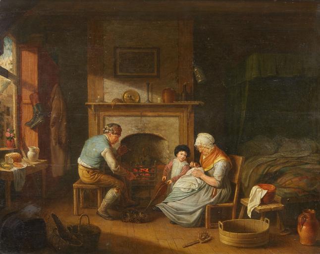| Keywords: Großeltern am Kamin 19Jh.jpg Großeltern und Enkel am Kamin Wohl Österreichischer Künstler der 1 Hälfte des 19 Jahrhunderts Öl auf Holz 48 5 x 62 5 cm https //www lempertz com century 19 anonymous PD-100 Images from Kunsthaus Lempertz Fireplaces in art Grandfathers in art Fireplace bellows Grandmothers in art Needlework in art |